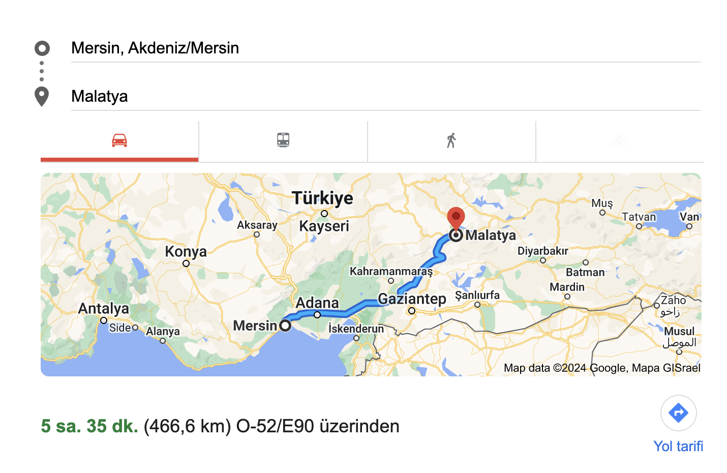 Mersin ve Malatya arasındaki hava yolu mesafesi yaklaşık 500 kilometre civarındadır. Ancak, Mersin’de büyük bir uluslararası havaalanı bulunmadığı için doğrudan uçuşlar genellikle mevcut değildir. Bunun yerine, Mersin’den Adana veya Antalya’ya geçip, bu şehirlerden Malatya’ya uçmak gerekebilir. Aktarmalı uçuşlarla toplam seyahat süresi genellikle 2-4 saat arasında olabilir, ancak aktarma süreleri ve beklemelere bağlı olarak bu süre uzayabilir.